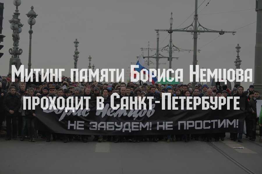 Участники митинга скандировали Кадырова под суд, Путина в отставку. Полиции это не понравились. Такие лозунги запрещены, это призывы к свержению конституционного строя, они не соответствуют тематике акции перекрикивал выступающих человек в серой форме. Активисты при виде силовиков скандировали позор и ещё выше поднимали плакаты: надпись "Кадыров герой России", где буква "Г" заменили на "Х" реяла над толпой. Неподалёку развевался флаг Евросоюза, ещё дальше транспоранты Борис жив убийцы мертвы, не забудем не простим. Из разрешили развернуть только на Марсовом поле. Во время несанкционированного шествия к месту митинга полицейские требовали убирать всю наглядную агитацию. Впрочем акция прошла спокойна. Расходились граждане под песню Виктора Цоя «Перемен!».