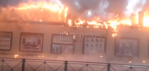 В тот момент, когда на место ЧП приехали пожарные, горела крыша двухэтажного гипермаркета. На данный момент известно, что площадь пожара локализована.