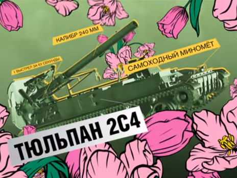 «В заставках телеканала вместо ожидаемых весенних букетов - легендарная российская военная техника, которая носит названия цветов. Самоходный противотанковый ракетный комплекс 9К123 "Хризантема", самоходная пушка 2Ф36 "Гиацинт-Б", самоходная артиллерийская установка 2С7М "Пион", самоходный миномет 2С4 "Тюльпан", самоходная артиллерийская установка 2С1 "Гвоздика", самоходная гаубица 2С3 "Акация", автоматический миномет 2Б9 "Василек"», - рассказала Петровская о замыселе телевизионщиков.