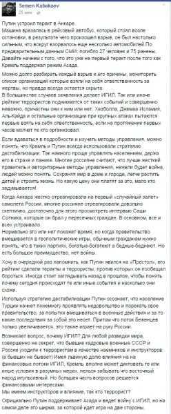 По предварительным данным СМИ: погибло 27 человек и 75 ранены. Давайте начнем с того, что это уже не первый теракт после того как Кремль поддержал режим Асада. Об этом в Фейсбуке пишет координатор группы Стоп Террор Семен Кабакаев.