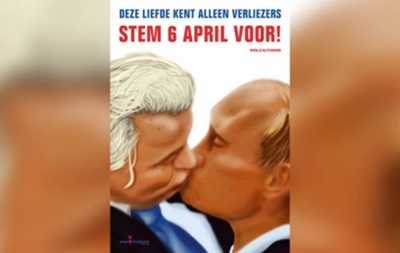 Нидерландская железная дорога запретила для размещения на своих станциях плакат партии Молодых социалистов Нидерландов, на котором голландский ультраправый политик Гирт Вилдерс обнимается и целуется с Путиным.