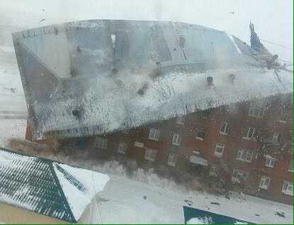 В городе Дудинка в Красноярском крае Российской Федерации у жилого пятиэтажного дома порывом сильного ветра сорвало крышу. Об этом сообщает управление МЧС России по Красноярскому краю.