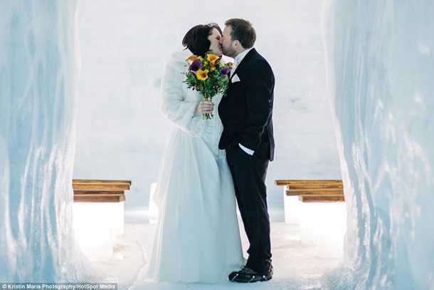 В качестве места для проведения свадебной церемонии был выбран ледник Лаунгйекюдль, внутри которого расположена небольшая часовня.