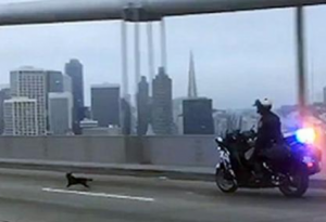 Вчера, 3 апреля, жители Сан-Франциско могли наблюдать удивительную картину, как полицейские гнались за собакой по мосту Сан-Франциско - Окленд. Офицерам все таки удалось догнать животное, позже они прозвали его Понч.