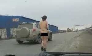 В городе Миассе Челябинской области произошел забавный и откровенный инцидент. В Интернете появилось сразу несколько видеороликов, на которых запечатлена абсолютно голая девушка, гуляющая около дороги.
