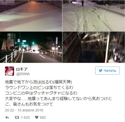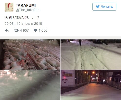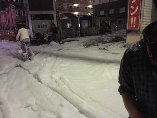 Жители японского города Фукуока, находящегося почти в 100 км от эпицентра землетрясения на острове Кюсю, начали наблюдать после инцидента аномальное явление с появлением на дорогах подозрительной белой пены.