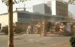 В китайском уезде Синтан, размещенного в провинции Хэбэй, произошла бойня на экскаваторах прямо посреди улицы.