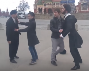 Загримированные под Ленина и Пушкина мужчины устроили потасовку на Васильевском спуске в Москве. Очевидцы сняли произошедшее на видео и опубликовали на YouTube необычную драку.