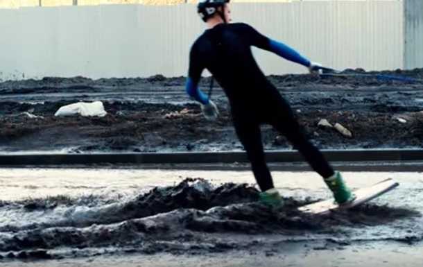 Житель российского города Челябинск прокатился на доске по лужам грязи на улицах города. Соответствующее видео авторы обнародовали на канале в YouTube.