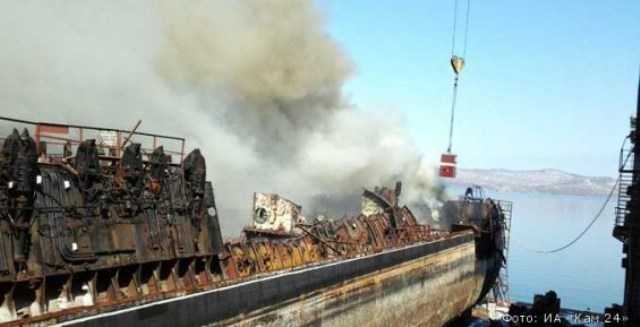 По предварительной информации, возгорание произошло в ходе работ по разделке корпуса.