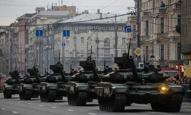 По улицам российской столицы прошла военная техника, в том числе танки Т-34-85, Т-90 и Т-14 «Армата», бронеавтомобили и зенитные ракетные комплексы.