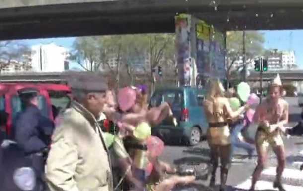 Активистки движения "Femen" испортили первомайский банкет сторонникам радикальной партии "Национальный фронт". Полицейские оперативно задержали полуобнаженных женщин.
