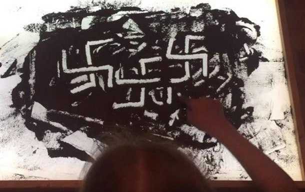 После этого она рассказывает историю о родственнике, воевавшем во время Великой отечественной войны, рисуя, якобы, на прахе, изображая, помимо прочего, свастики.