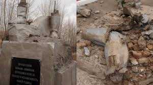 Памятник, который находился в городе Борзе в Забайкальском крае, рухнул накануне Дня Победы и сейчас представляет из себя груду обломков.