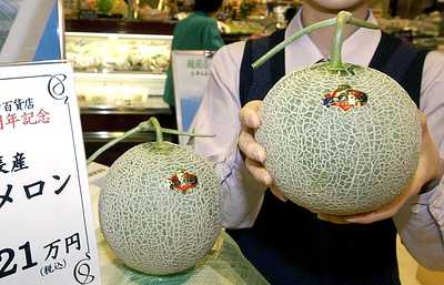В Японии регулярно проводятся торги дорогостоящих фруктов и овощей изысканных сортов. В прошлом году, например, пару плодов манго с плантаций южной префектуры Миядзаки продали за 2,5 тыс. долл. Такие солидные суммы обычно вносят владельцы магазинов, которые выставляют фрукты в рекламных целях как символ солидности заведения.