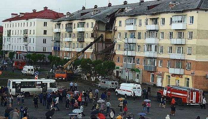 В сети появилась видеозапись с кадрами обвала 5-этажного жилого дома в Междуречинске (Кемеровская область, РФ). Запись была сделана видеорегистратором машины, которая стояла напротив дома.