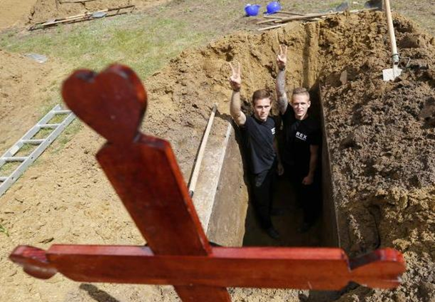 18 командам, в каждой по два человека, предстояло вручную вырыть могилу длиной 200 сантиметров, шириной – 80, и глубиной – 160. Победителям потребовалось на это менее получаса.