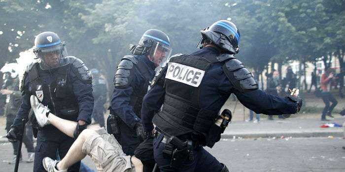 Впереди колонны шли тысячи молодых людей, некоторые из них заранее подготовились к возможными столкновений с полицией. На голове у них были каски, которые скрывали лицо. Участники акции выкрикивали: «Париж, вставай, поднимайся!»