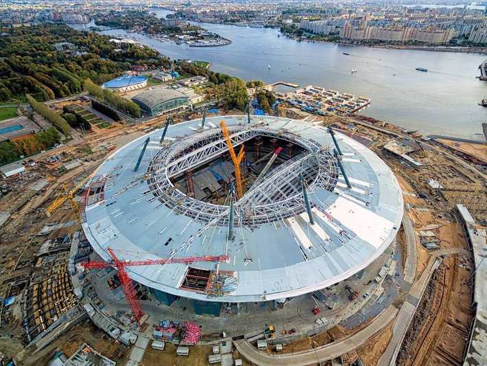 Российский финансист Слава Рабинович сообщил, что из-за непогоды сдуло обшивку на недостроенной арене на стадионе "Зенит-Арена", который Россия готовит к ЧМ по футболу 2018 года. Блогер разместил фото подтверждение своих слов.