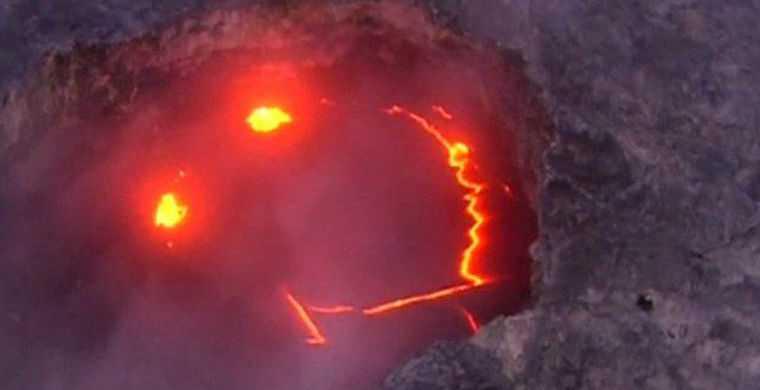 Видео, снятое при облете вулкана на Гавайях, показало, что лава в его жерле образовала смайлик.