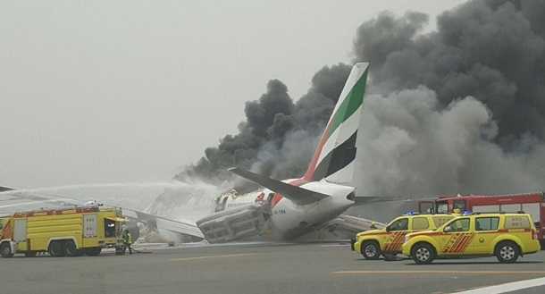 В аэропорту Дубая (ОАЭ) после аварийной посадки загорелся самолет, сообщает авиакомпания "Emirates Airlines".