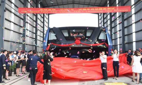 В китайской провинции Хэбэй прошли испытания «автобуса будущего» "Transit Elevated Bus" (TEB-1).