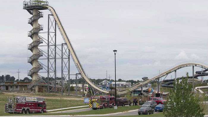 Сообщается, что парень умер именно во время спуска с горки-рекордсмена под названием «Verrückt», которую официально признано самой высокой водной горкой в мире. Ее высота составляет 51,38 м - она даже выше, чем статуя Свободы. Максимальная скорость спуска составляет около 110 км/ч.