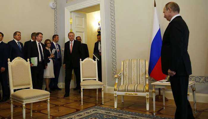 В сети появилось видео начала встречи российского и турецкого лидеров. На нем видно, что Путин пришел на место встречи в зале первым и дожидался Эрдогана некоторое время. Это не укрылось от наблюдательных глаз пользователей соцсетей, которые назвали инцидент публичным унижением.