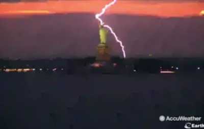 В Нью-Йорке во время грозы молния попала в голову одного из самых знаменитых монументов в США - статуи Свободы.