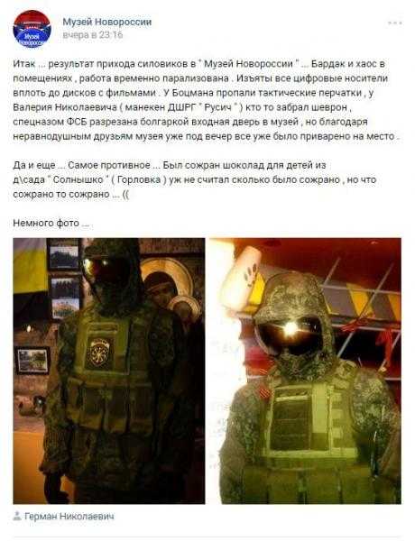 Но – самое главное – директор музея пишет, что ФСБшники съели (если точнее, языком оригинала – сожрали) шоколад, предназначавшийся для голодающих детей Горловки.