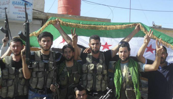 На видео видно, как группа мужчин, сидя под флагом Свободной сирийской армии, оппозиционной правительству президента Башара Асада, развлекается и поет в караоке.