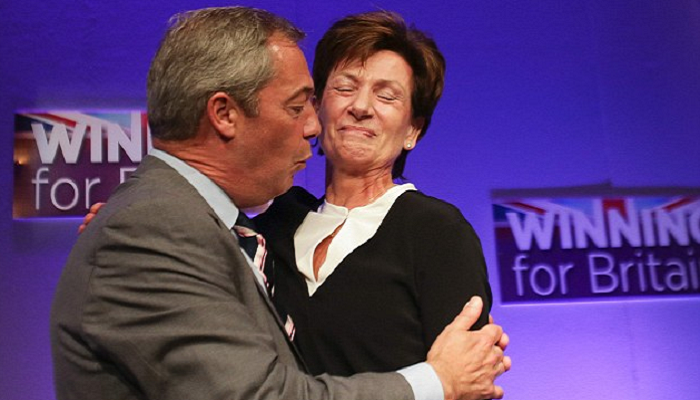 Пользователи сети начали активно обсуждать появление нового «отвратительного поцелуя в политике». На партийной конференции в Борнмуте депутата Европейского парламента Диану Джеймс поцеловал известный по прозвищу «отец Brexit» Найджел Фараж.