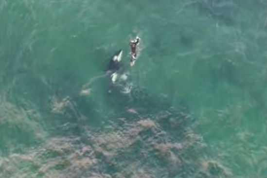 Видео, на котором запечатлены новозеландский смельчак и плывущий рядом с ним кит-убийца, было опубликовано в YouTube.