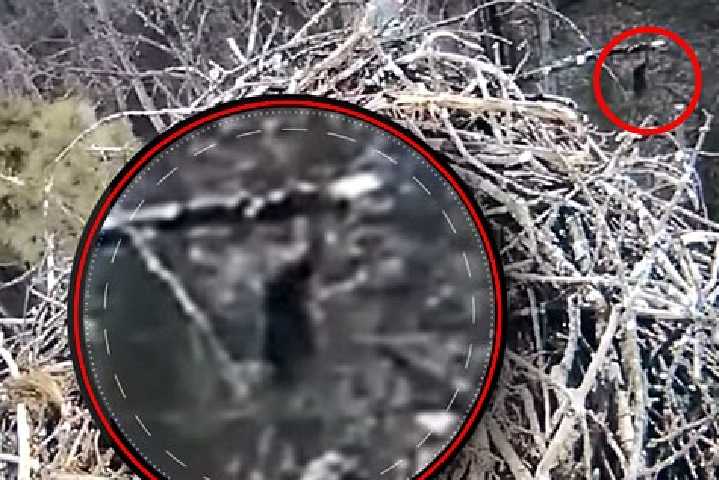 Сообщается, что в ходе просмотра видео с камеры ученые заметили не идентифицированное двуногое существо, которое шло по лесу под орлиным гнедом.