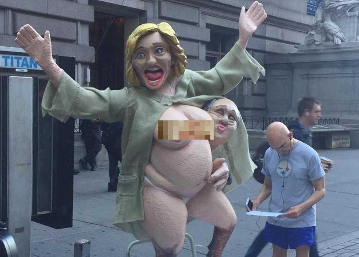 Полуголая Хиллари Клинтон являет собой карикатурное изображение в виде скульптуры кандидата в президенты, выполненное в полный рост. Его создал художник Энтони Скиоли и разместил неподалеку станции метро Боулинг-Грин. Множество людей подходили сфотографироваться к сатирическому образу.