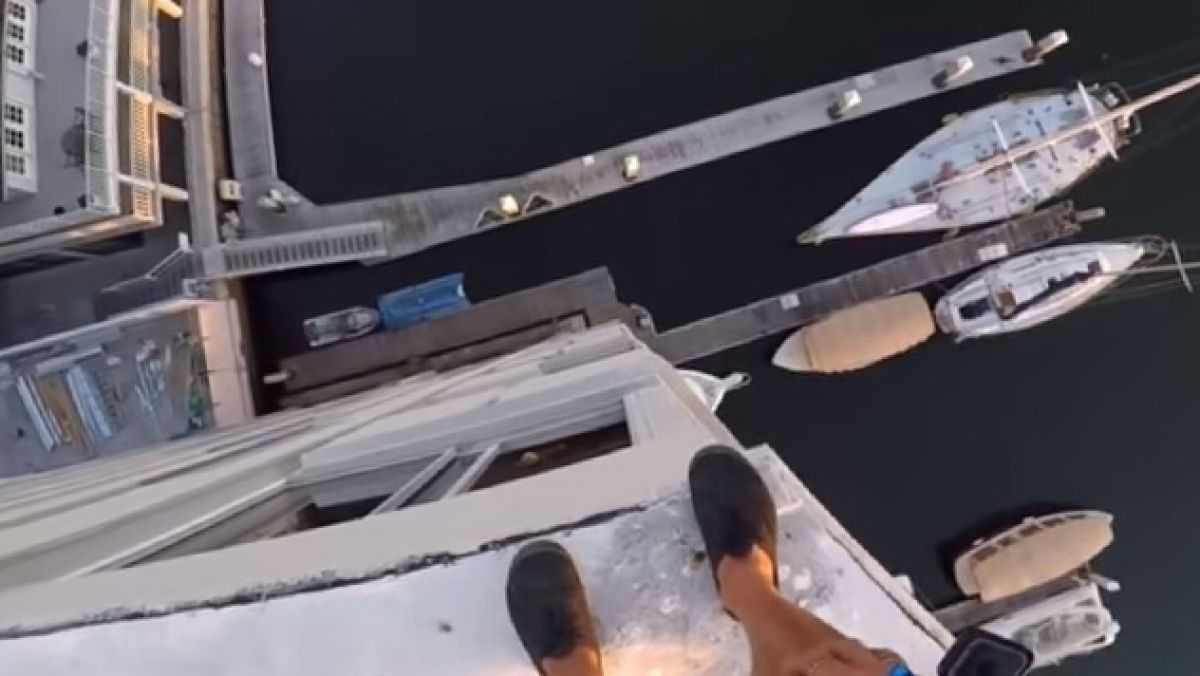 Пользователь YouTube из Калифорнии под ником 8Booth пробрался на крышу высокой постройки на побережье и без страховки прыгнул в воду с высоты около 40 метров, записав все произошедшее с помощью двух камер GoPro.