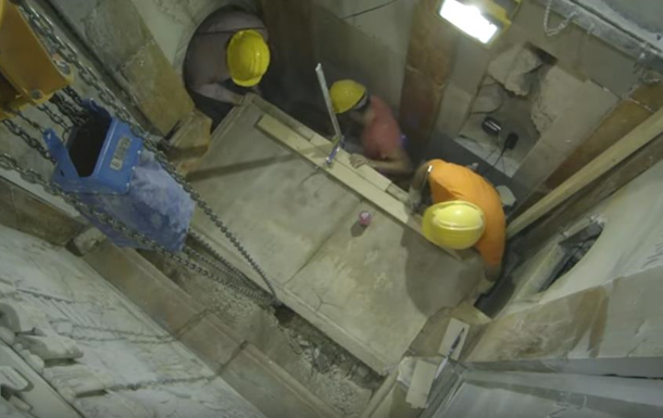 На YouTube опубликован видеоролик, на котором археологи снимают мраморную плиту с предполагаемого места погребения Иисуса Христа в иерусалимском храме Гроба Господня.