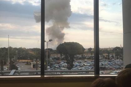 Свидетели происшествия сделали фотографии и видео огромного столба дыма, который поднимается неподалеку от аэропорта.