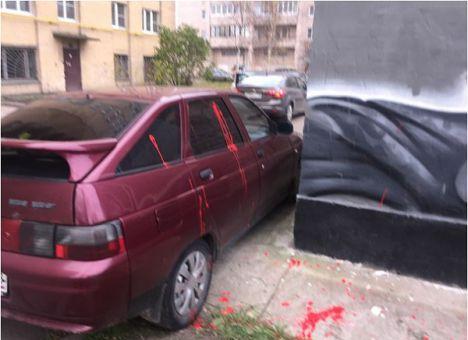 Российские художники, которые нарисовали портрет боевика, пытаются найти "диверсанта". В своем паблике в соцсети "ВКонтакте" они написали, что человек приехал к указанному месту ночью по улице Садовой. При этом на кадрах видно, что он совершил телефонный звонок, после чего закидал рисунок кроваво-красной краской.