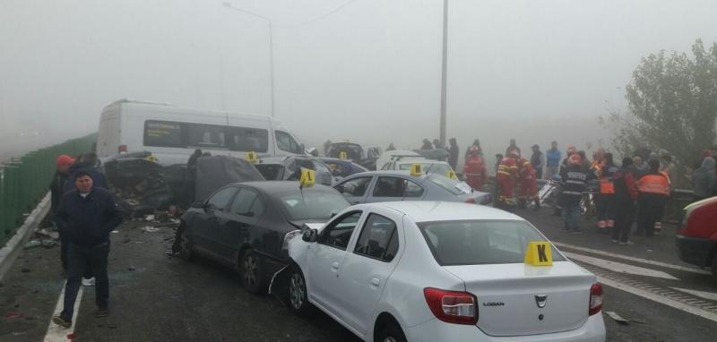 Біля румунського міста Лехліу-Ґаре на трасі, що з'єднує Бухарест і Констанцу, в суботу вранці через густий туман сталося масове ДТП. Всього в аварію потрапили більше 20 автомобілів.