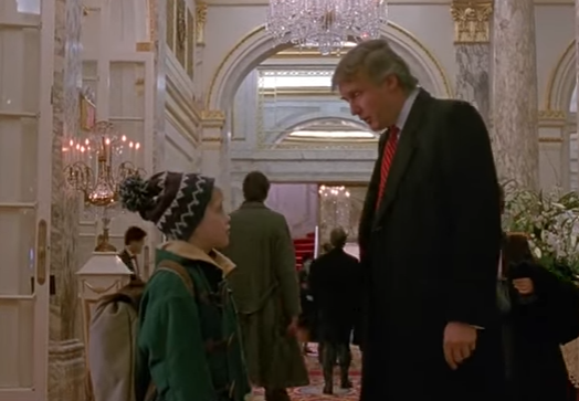 Создатели ролика вспомнили фильмы, сериалы и телешоу, в которых будущий президент сыграл самого себя. Например, он встречает молодого Маколея Калкина во второй части фильма «Один дома», избивает судью в одном из выпусков WWE, привлекает внимание Саманты Джонс — героини «Секса в большом городе».
