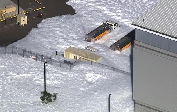 Улицы возле одного из складов международного аэропорта в американском городе Сан-Хосе в Калифорнии залило огромным количеством огнестойкой противопожарной пены.
