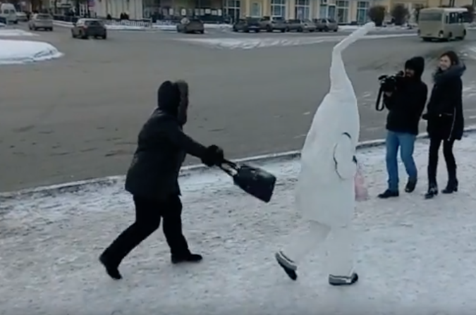 Не всем такая акция пришлась по-душе. Одна из женщин начала бить "сперматозоида" сумкой и кричать на него, после чего активист убежал с площади.