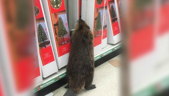 Бобер, который забежал в супермаркет в городе Шарлотт Холл штата Мэриленд (США), сразу направился «на проверку» в отдел рождественских украшений. Животное долго бродило между рядами и проверяло коробки с игрушками.