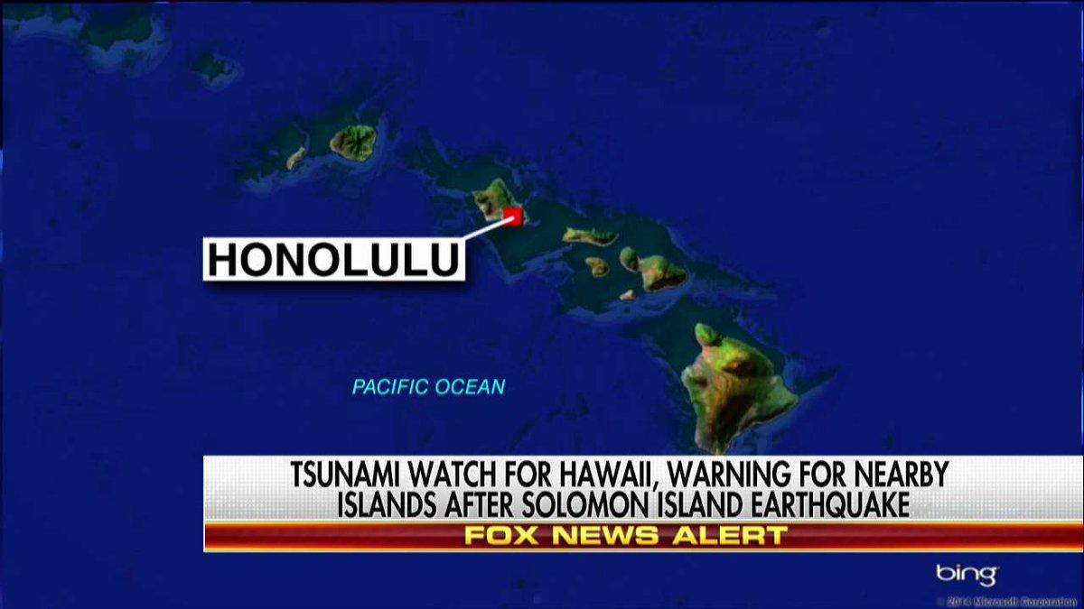 Tsunami watch for Hawaii, warning for nearby islands after Solomon Island earthquake. pic.twitter.com/9FfocF065s