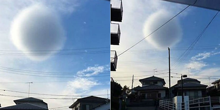В небе над японским городом Фуджисава, заметили странное облако. Жители города заявили, что оно напоминает сферу, которая нависла над городом. Очевидцы, которым удалось зафиксировать явление, заметили, что облако бесследно и быстро растворилась в небе после того, как его сфотографировали.
