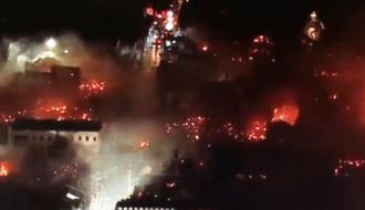 Отмечается, что пожар начался сегодня утром и уже к середине дня загорелись 140 домов и других зданий, находящихся рядом с рестораном.