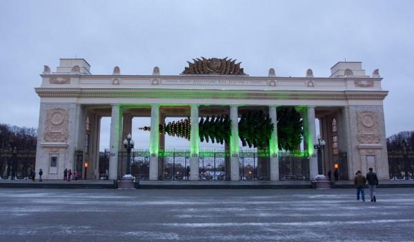 Жителей и гостей российской столицы очень удивила новогодняя елка, которую установили на входе в Парк Горького в Москве.