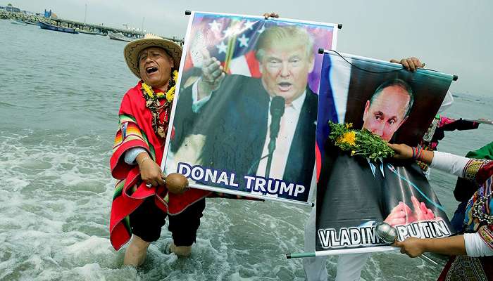 Перуанские служители культа провели обряд с плакатами с новоизбранным американским президентом Дональдом Трампом и главой России Владимиром Путиным. Они пытались смягчить сердца мировых лидеров.