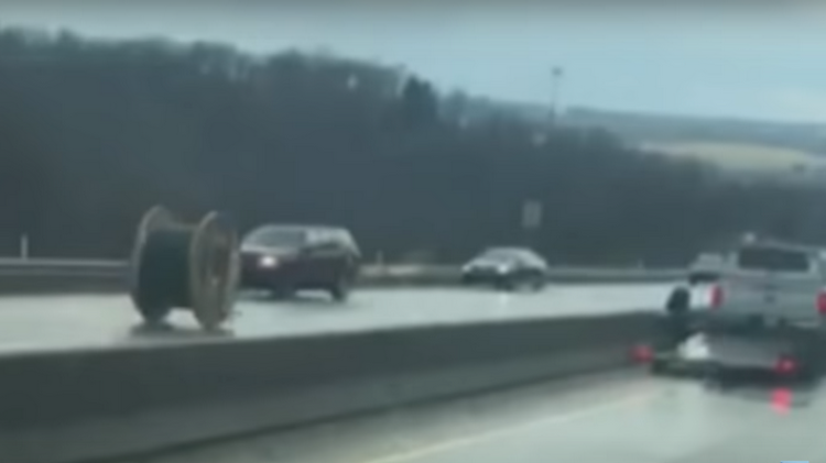 В американском штате Пенсильвания водителей на шоссе напугала огромная катушка с кабелем. Она вылетела из грузовика и на большой скорости покатилась навстречу автомобилям, ехавшим по трассе.